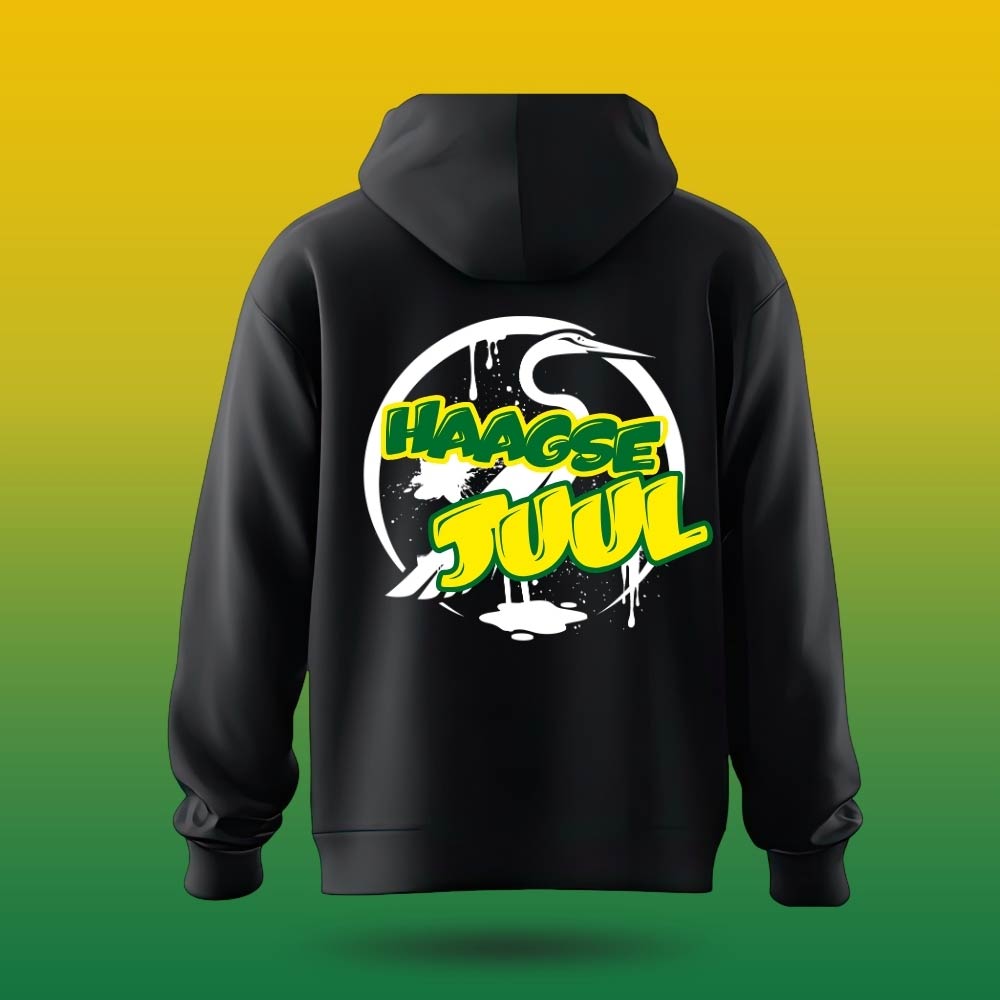 Ben jij een fan van Haagse Juul? Dan is er nu de kans om de Haagse Juul-hoodie aan te schaffen! Met het borstlogo van Juul op de voorkant en in het groot op de achterzijde. En dat op een heerlijk zittende hoodie die je nooit meer zou willen uittrekken!
